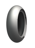 The FLASH head enhances water drainage when upright and contributes to enlarged central footprint The center slick portion tunes tread stiffness by reducing grooves’ deformation, enhancing homogeneous thrust no matter the lean angle The FLASH tail orientation follows the direction of lateral and longitudinal racetrack-specific leaning forces combined, providing regular wear and performance consistency combined with quick warm-up The reduced amount of lateral grooves means more rubber to the road at mid-lean and full-lean and delivers enhanced cornering grip The 100% slick closed-loop on the shoulders’ sides provides enhanced thrust at the extreme lean angles
